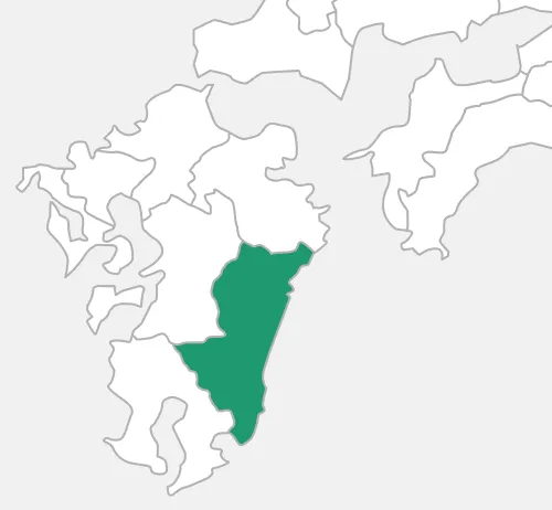 スギ素材生産量は1991年以来連続で全国1位、スギ以外を含む丸太出荷量や製材品生産もトップクラスです。県産スギは飫肥地方(日南市周辺)で江戸時代から植林されてきた飫肥杉が起源で、油分を多く含み湿気に強く耐朽性に優れることから木造船や木橋の材料として多く利用され、県外や海外へも出荷されました。心材に含まれる殺蟻成分によりシロアリへの耐久性が大変高く、家の土台や柱など建材として活用されています。非住宅や外構材への利用も進んでおり、県産スギを使用した世界最大級の木造建築物があります。