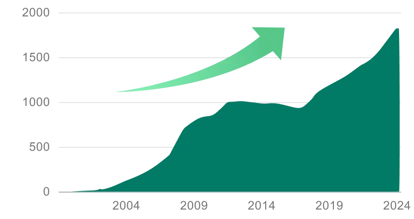 国内のFSC-CoC取得者数(1993/7~2023/2)