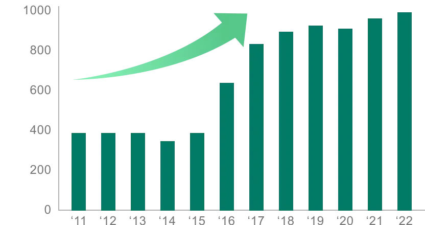 国内SGEC/PEFC-CoC取得者数(2011~2022)